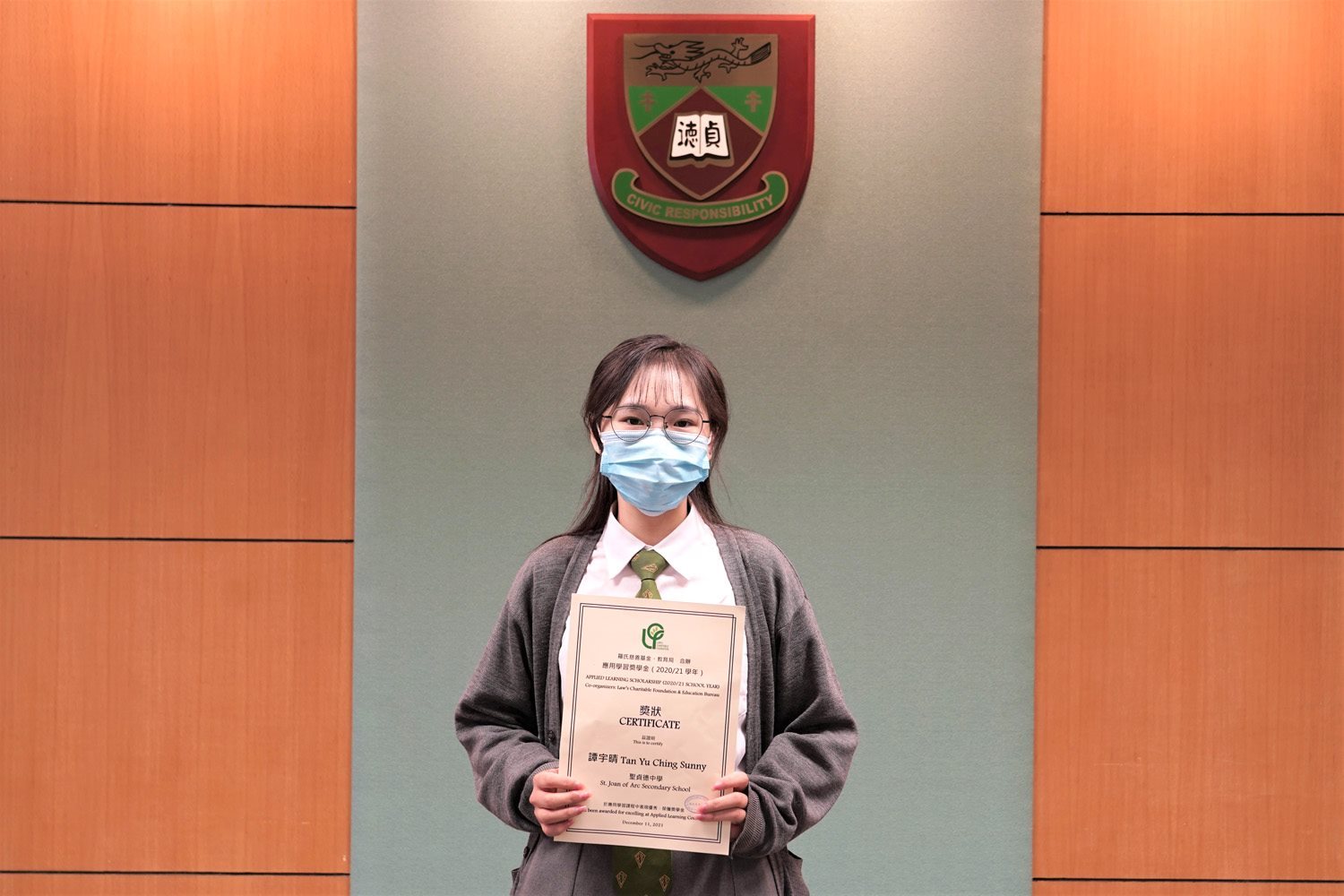 6 Charity Tan Yu Ching Sunny is studying Applied Learning Course (Fundamental Cosmetology) was awarded The Applied Learning Scholarship (2020/21 School Year), due to her positive learning attitude and achieved good progress in their study.
