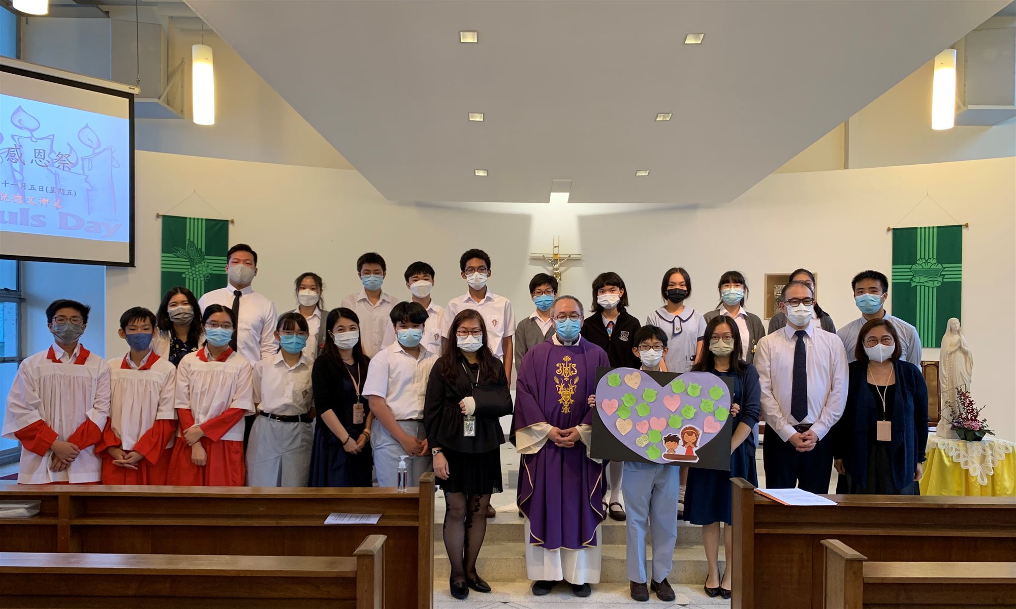 We begin each November with the Feasts of All Saints and All Souls. The entire month is dedicated to remembering and praying for the dead and relieving the sufferings of the souls in purgatory. A mass was held in Transfiguration Chapel in remembrance of deceased relatives, friends and those who once served in SJA with dedication in their life. Mass celebrant, Fr. Ngai reminded us to honour the memory of the dead through the Holy Sacrifice of the Mass at all times.